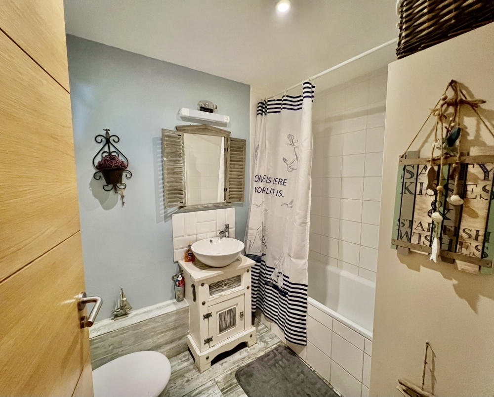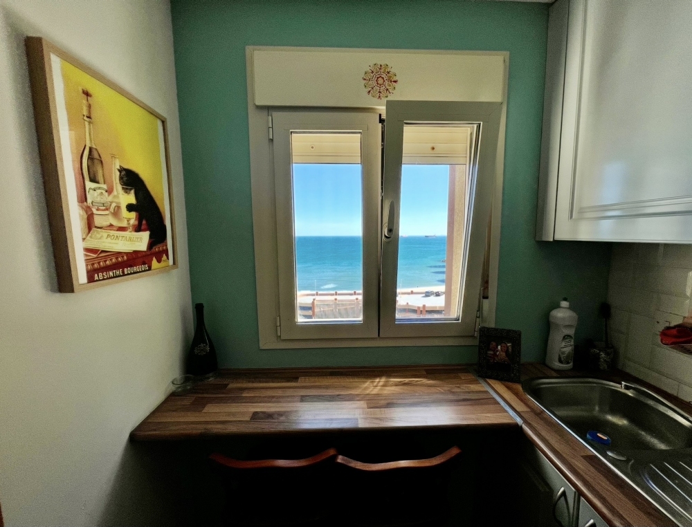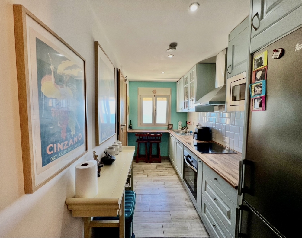At the end of the corridor, you'll find access to a spacious living room with a balcony that receives the morning sun — perfect for relaxing or entertaining. The galley kitchen offers stunning views of the beach and includes a large utility room for added convenience. The apartment has been beautifully tiled throughout and features a modern bathroom, completing this wonderful home.