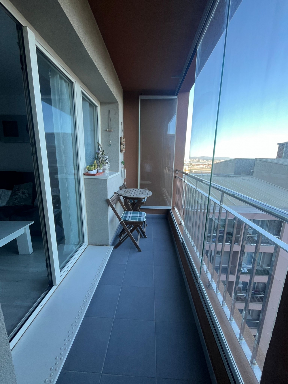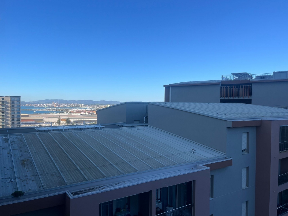 Beautiful, right two-bedroom on a high floor in Beachview Terraces. The elegantly presented high-floor two-bedroom, one-bathroom apartment has a triple orientation position due to being a corner unit. This fills the property with natural sunlight at all times and is warm and inviting. The property has a modern feel to it and is decorated with neutral colours, allowing a new purchaser to put their own stamp on it. As you walk in, on your right, you find a lovely bathroom followed by a well-appointed galley kitchen with views towards the south. Following down the corridor, there is a double room with plenty of storage, and the master bedroom again with new wardrobes and a box room cleverly used as a walk-in wardrobe for added comfort, with further south-facing views. All bedrooms are outward-facing and have partial sea views. The living area is a good size, fits a dining table, and leads out to an east-facing balcony with sea views. Benefiting from its height, the balcony can see over the building to the west, enjoying those warm summer evening sun and providing a perfect outdoor space.
